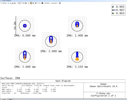 This case study showcases a transformative departure from traditional F-theta lens designs, emphasizing the strategic integration of a compensating element to meet customer demands for an expanded field of view. Meticulous enhancements, utilizing a quartz design and departing from conventional approaches, underscore the dedication to meeting stringent performance standards. Despite challenges in evaluating spot quality, the shift to the Modulation Transfer Function reflects adaptability and a commitment to excellence in optical innovation.