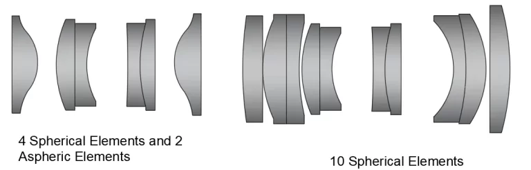 Figure 1: Despite appearing complex, a single aspheric lens can replace multiple spherical lenses in an optical assembly, resulting in a simpler, more compact, and lighter final system.