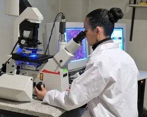 A fluorescence microscope is a type of optical microscope that uses fluorescence to examine small details or objects. Fluorescence microscopy uses optical filters to allow the transmission of certain lights through the microscope lens. This way, researchers can be able to observe specific details in objects that wouldn’t be visible to the naked eye under normal circumstances.