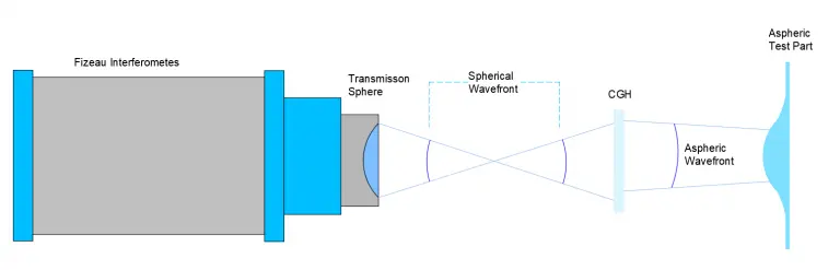 - Computer-Generated Holography (CGH): CGH adapts interferometry for aspheres by creating custom holograms to match surface profiles. Ideal for high-slope aspheres, its practicality lies in large-scale production but faces challenges with inflection points.