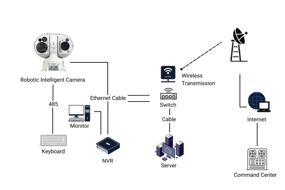 - Section 2: Wireless Monitoring Camera System with Integrated Solar Monitoring Pole For scenarios where installation and transmission pose challenges, such as remote areas or locations with limited infrastructure, the wireless monitoring camera system with an integrated solar monitoring pole proves to be a rapid and flexible deployment solution. This section explores the utilization of wireless transmission technologies, eliminating extensive wiring while maintaining reliable connectivity. The system components, including an electric sentry camera, a server for data processing and storage, and a command center for monitoring and control, are discussed. Special attention is given to the high-quality video footage, night vision capabilities, and seamless integration options that make these systems adaptable to various security infrastructure setups.