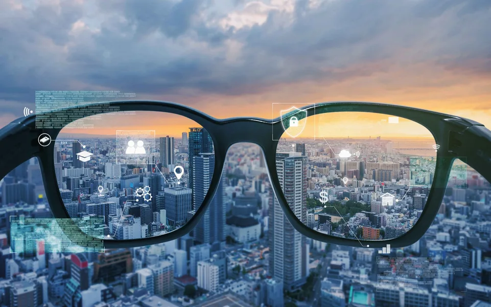 This is very different than virtual reality (VR) displays, which use a display screen located in front of the user’s eye to block out the real world. The display of AR glasses is typically positioned on the forehead or near the temple, and specialized optics magnify an image and alter its path before transmitting it to the eye.