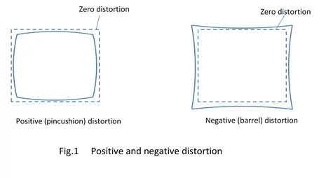 Distortion can be positive (pincushion distortion) or alternately negative (barrel distortion), shown in Figure 1.
