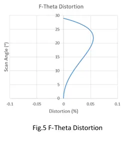 As with other aberrations, F-theta distortion is determined by the optical design of the lens. Shanghai Optics Inc. has over 55 years of experience in design and manufacturing low distortion f-theta lenses. Fig.5 shows the F-Theta