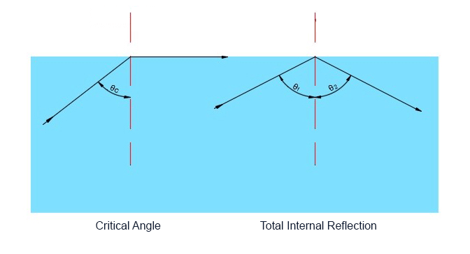 In order for total internal reflection to occur, the incidence angle must be greater than the critical angle.